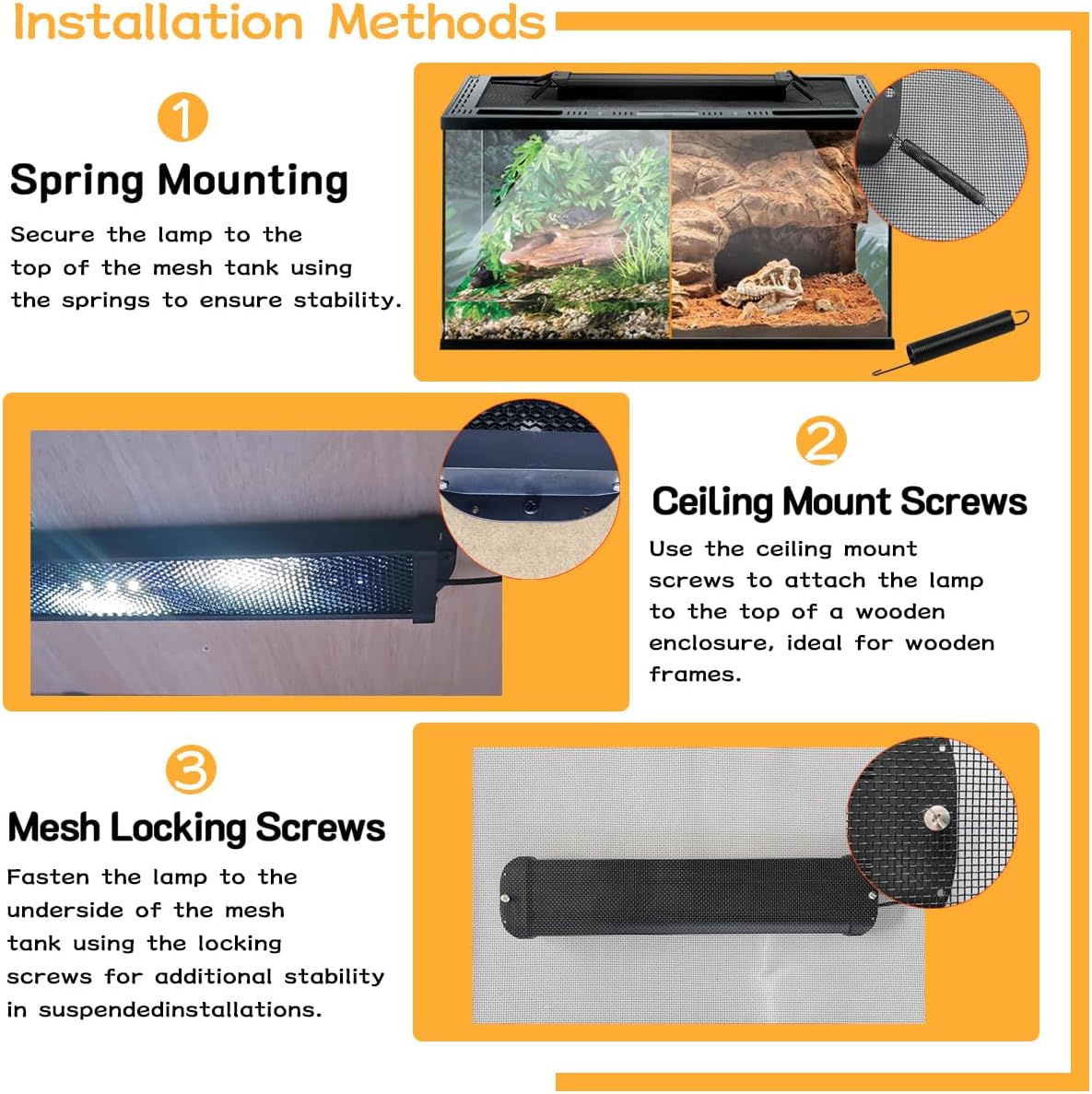 - Energy Efficient and Safe Design - Our LED reptile light is energy-efficient, providing a long-lasting solution while minimizing heat output. This design prevents overheating, creating a safe and comfortable environment for your reptiles. Enjoy peace of mind knowing your pet is protected while basking under reliable lighting