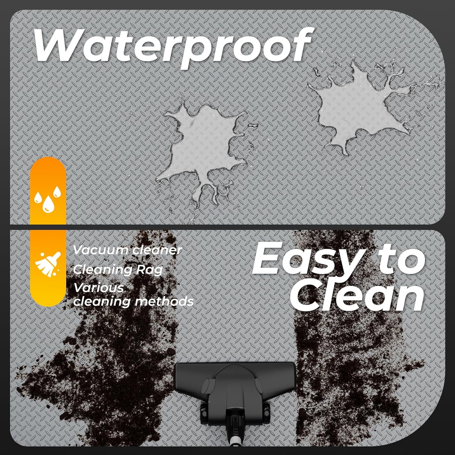- ๐งใ Premium Slip-Resistant Diamond PlateใDiamond pattern on surface of garage car mat, special designed for anti-slip and safe in/out. Waterproof garage flooring provides excellent protection from dirty water penetration,creating a dry and clear environment