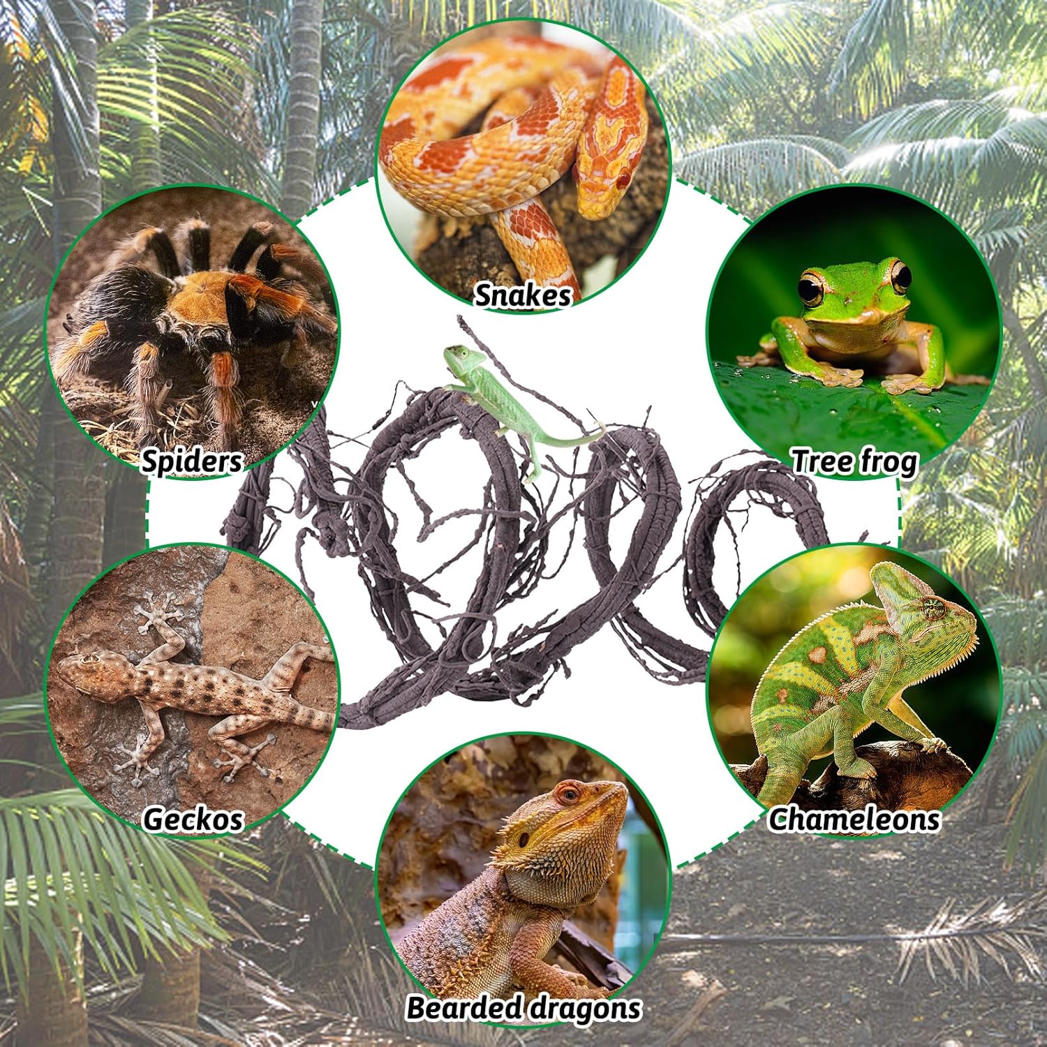 - Long and Thick: Long artificial vines are not only long but also thick, able to give reptiles some support when climbing. Thick vines for reptile can provide resting and hiding places to increase their activity and maintain good health