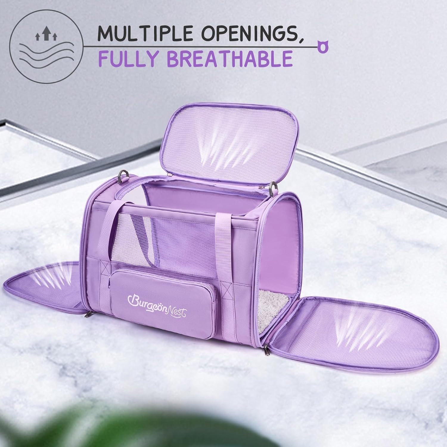 - Well-made Large Cat Carrier: With upgraded memory metal for sturdy frame, this cat carrier for 2 cats does not collapse. Made of breathable fabric, BurgeonNest cat carrier has 3 doors to open, it is more convenient to put your dog cat in or out. Plush cushion with sturdy bottom inserts ensures comfortable environment for pets.
