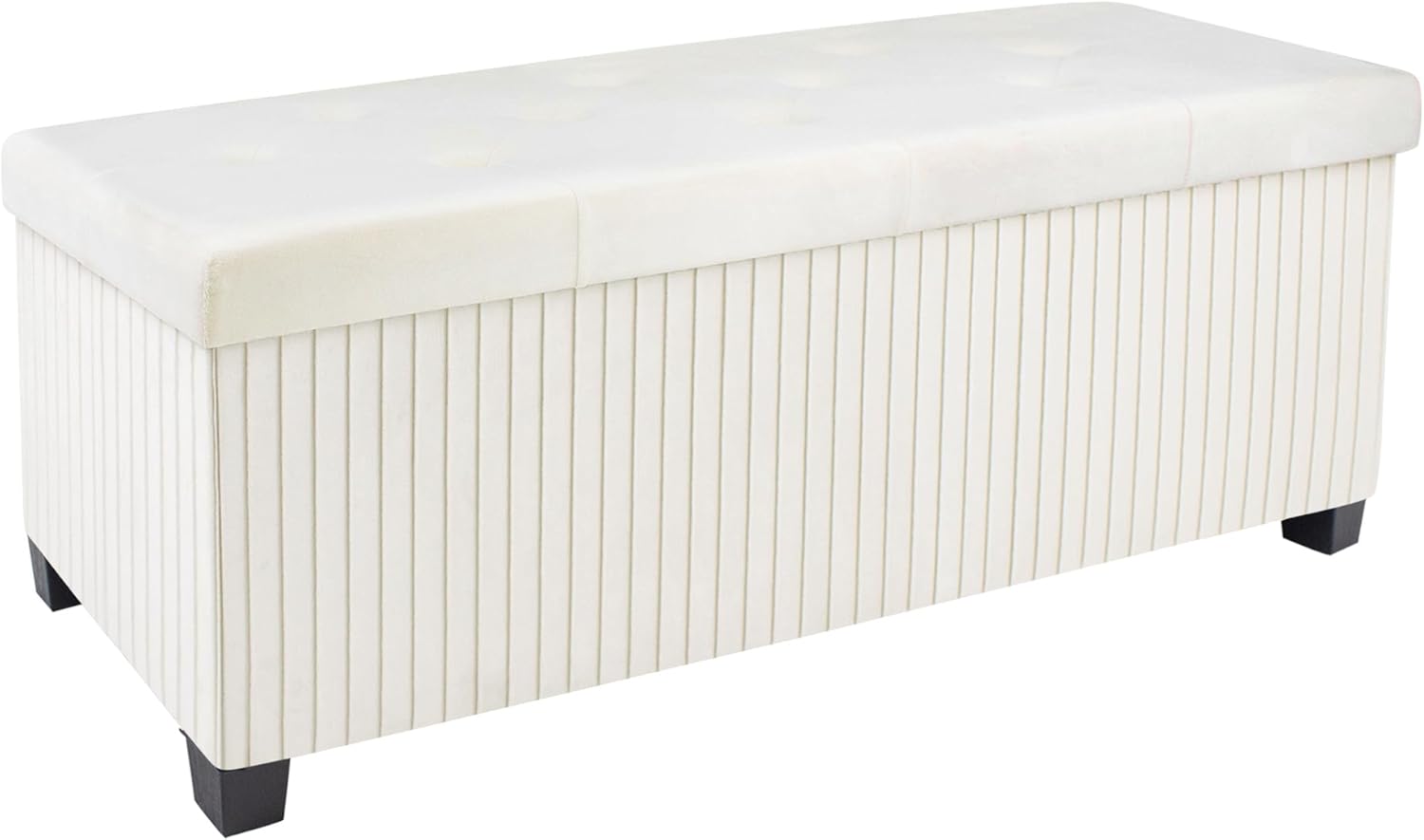 Storage Ottoman Bench, 43 Inch Foldable Ottoman with Legs, Velvet Foot Rest Stool, End of Bed Bench, Storage Chest for Living Room, Bedroom (Beige)