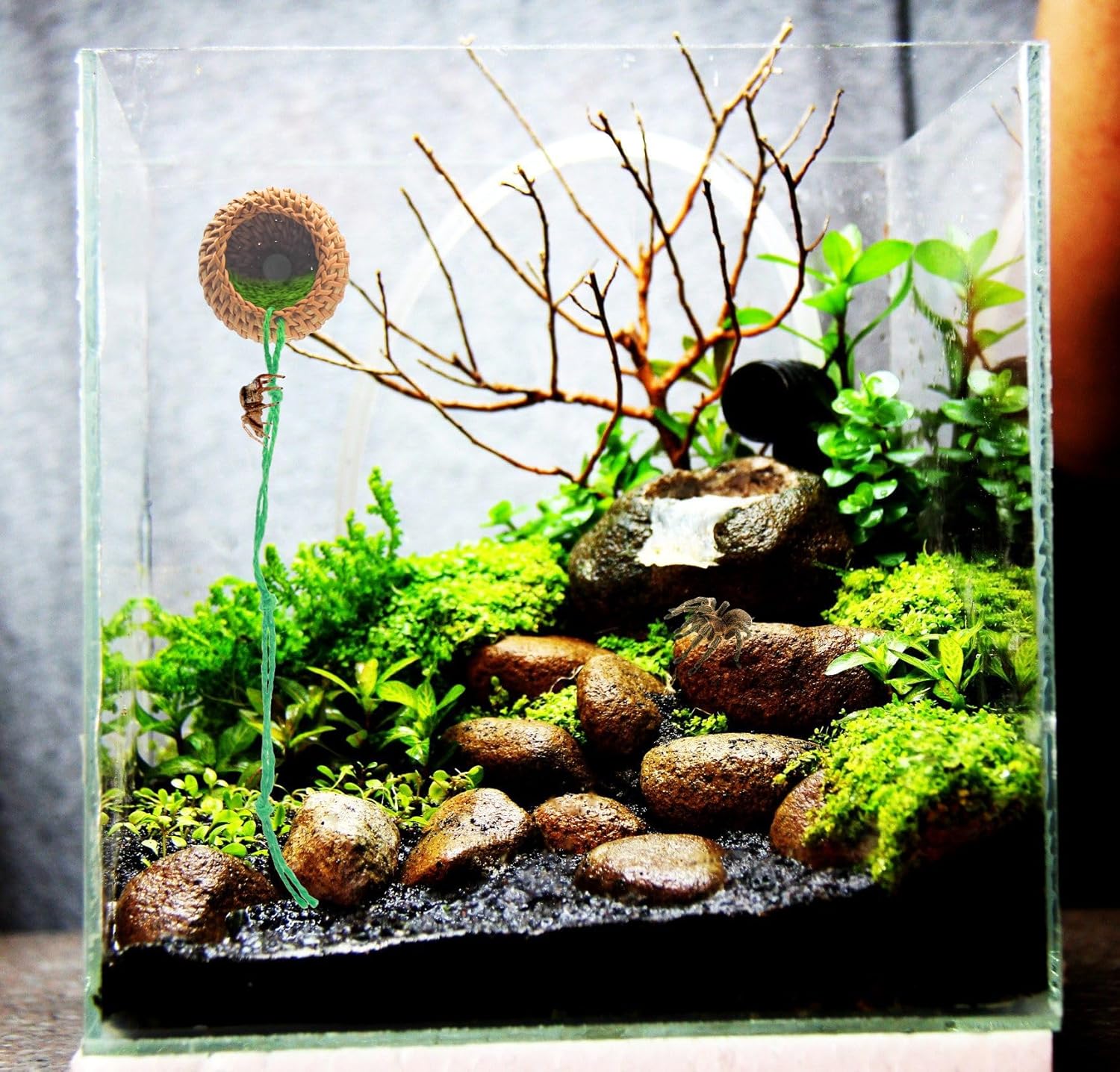 - 【Rope fittings】:Jumping spider enclosure accessories come with ghreen ropes that you can freely adjust in length, . Spiders' preference for color is mainly reflected in their sensitivity to green, and they are more easily attracted by green, so we have specially equipped a green rope for spiders to easily climb into hidden caves.