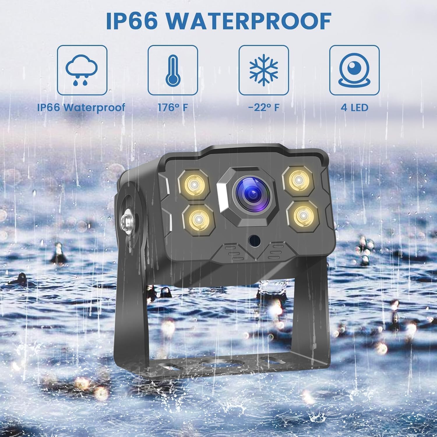 - IP66 Waterproof and High Temperature Resistant: The camera is designed to withstand harsh weather conditions, including rain, snow, and extreme temperatures ranging from -22°F to 176°F