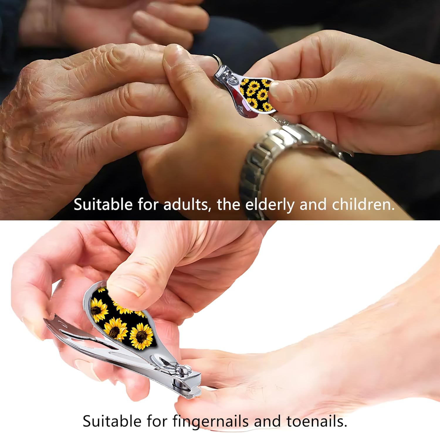Nail Clippers with Key Chain Cute Stainless Steel Nail Cutter with File Professional Toenail Clipper for Men Multifunction Toenail Clipper 2 Pack Nique Cutter for Adult(Sunflower)