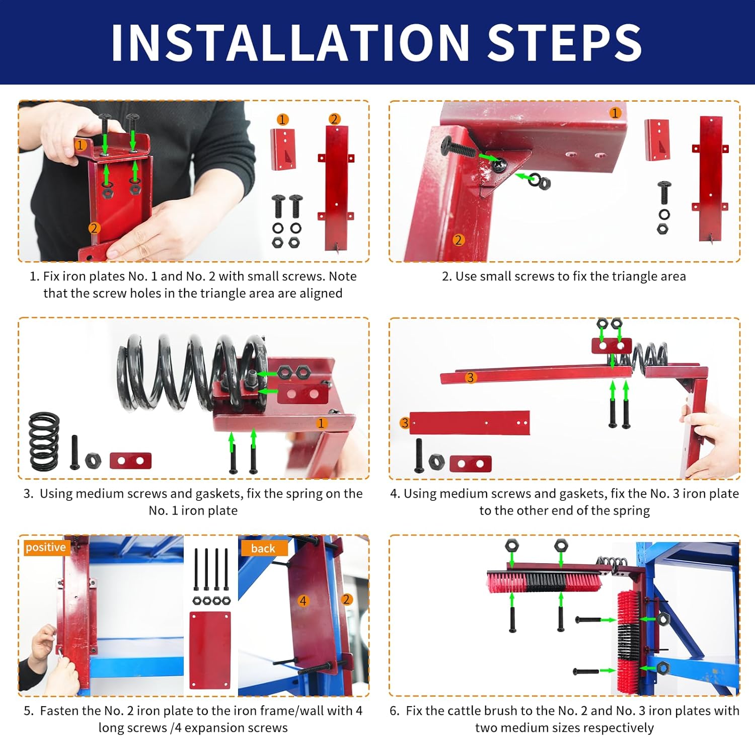 - Easy to Install: With the included screws and nuts, these livestock scratching brushes can be easily installed on stumps, fence posts, and other suitable places to prevent livestock from rubbing against valuable fences, equipment, or buildings.