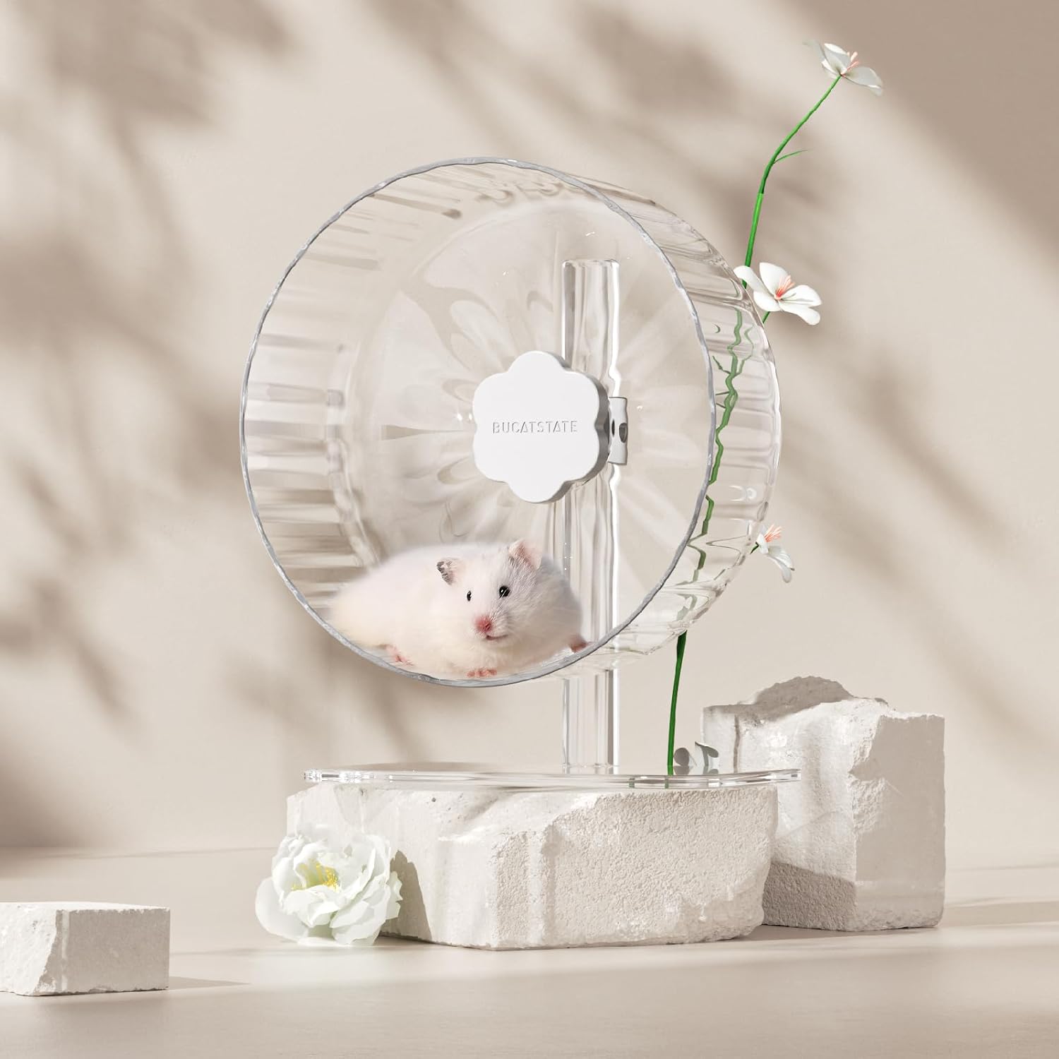 - Energetic Pet-Proof Stability: 30mm reinforced base with shock-absorbing grooves prevents wobbling during marathon runs. Optimize performance by securing the included platform on flat surfaces for dwarf(21cm) and Syrian(26cm) sprinters.