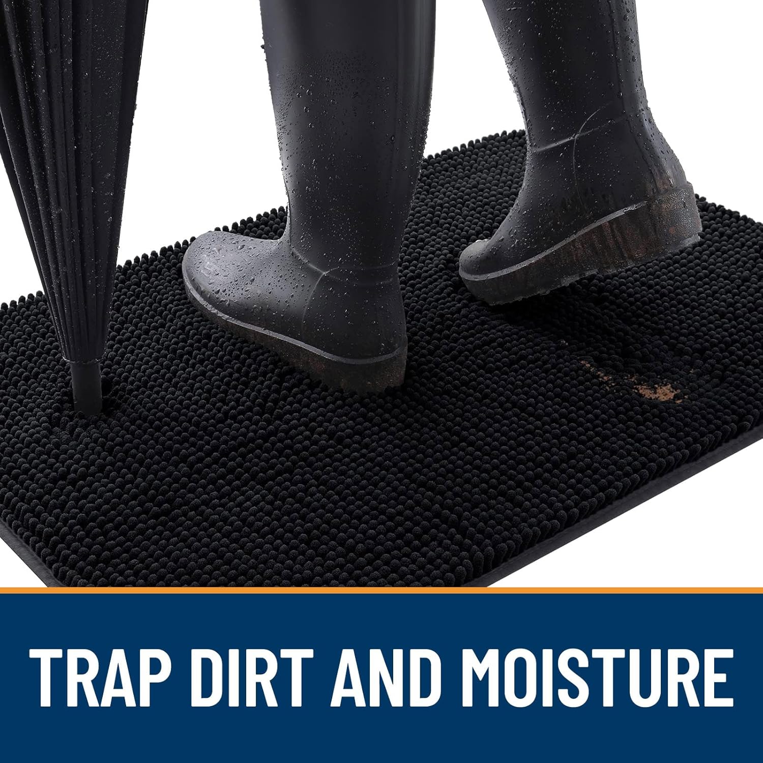 OLANLY Dog Door Mat for Muddy Paws 45x27, Absorbs Moisture and Dirt, Absorbent Non-Slip Washable Doormat, Quick Dry Chenille Mud Mat for Dogs, Entry Indoor Entryway Carpet for Inside Floor, Black