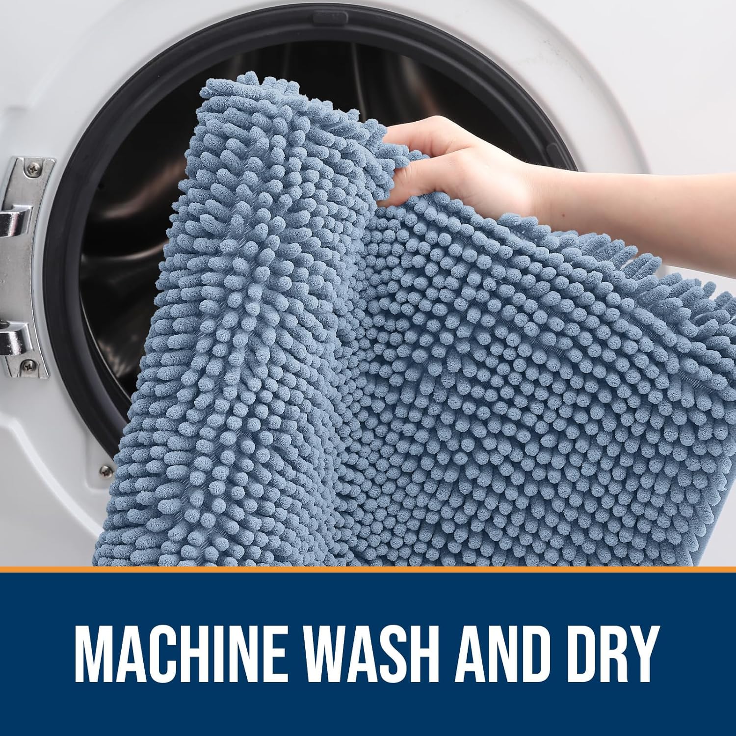 OLANLY Dog Door Mat for Muddy Paws 24x16, Absorbs Moisture and Dirt, Absorbent Non-Slip Washable Doormat, Quick Dry Chenille Mud Mat for Dogs, Entry Indoor Entryway Carpet for Inside Floor, Airy Blue