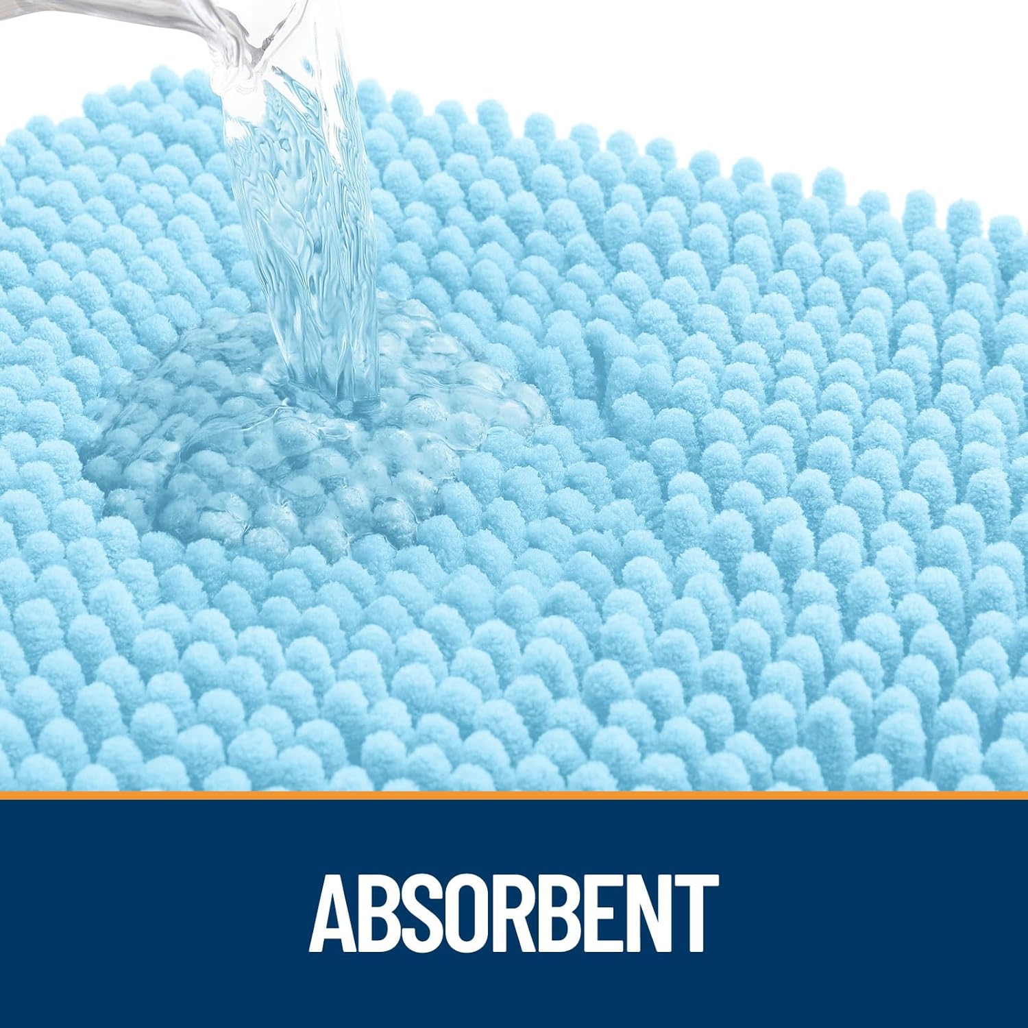 OLANLY Dog Door Mat for Muddy Paws 47x17, Absorbs Moisture and Dirt, Absorbent Non-Slip Washable Doormat, Quick Dry Chenille Mud Mat for Dogs, Entry Indoor Entryway Carpet for Inside Floor, Blue