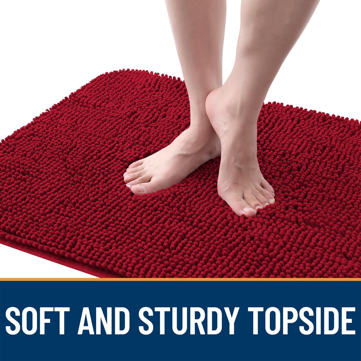 OLANLY Dog Door Mat for Muddy Paws 30x17, Absorbs Moisture and Dirt, Absorbent Non-Slip Washable Doormat, Quick Dry Chenille Mud Mat for Dogs, Entry Indoor Entryway Carpet for Inside Floor, Red