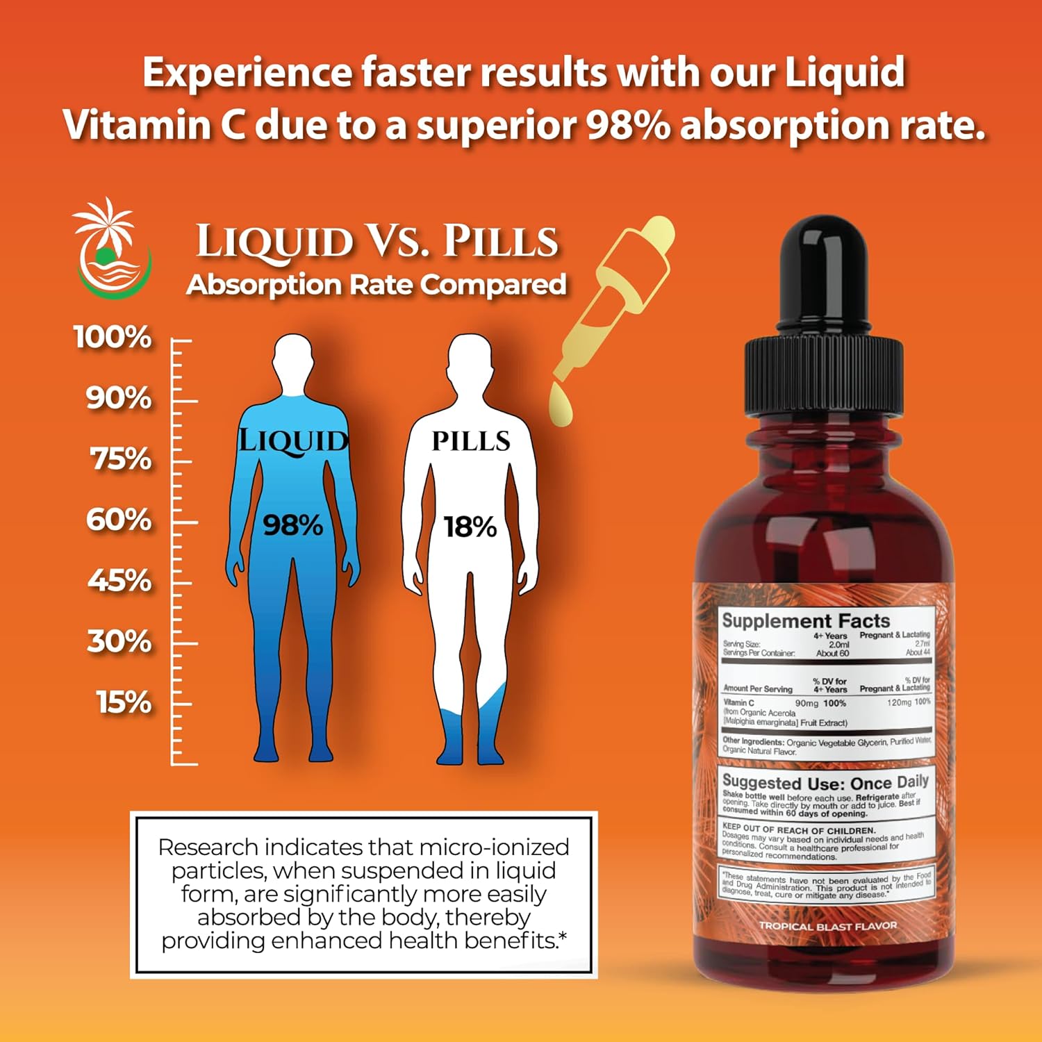 Tropical Oasis USDA Organic Liquid Vitamin C Drops for Adults & Kids | Supports Healthy Immune System | 98% Absorption Rate | Vegan | Non-GMO | Gluten Free | 60 Servings
