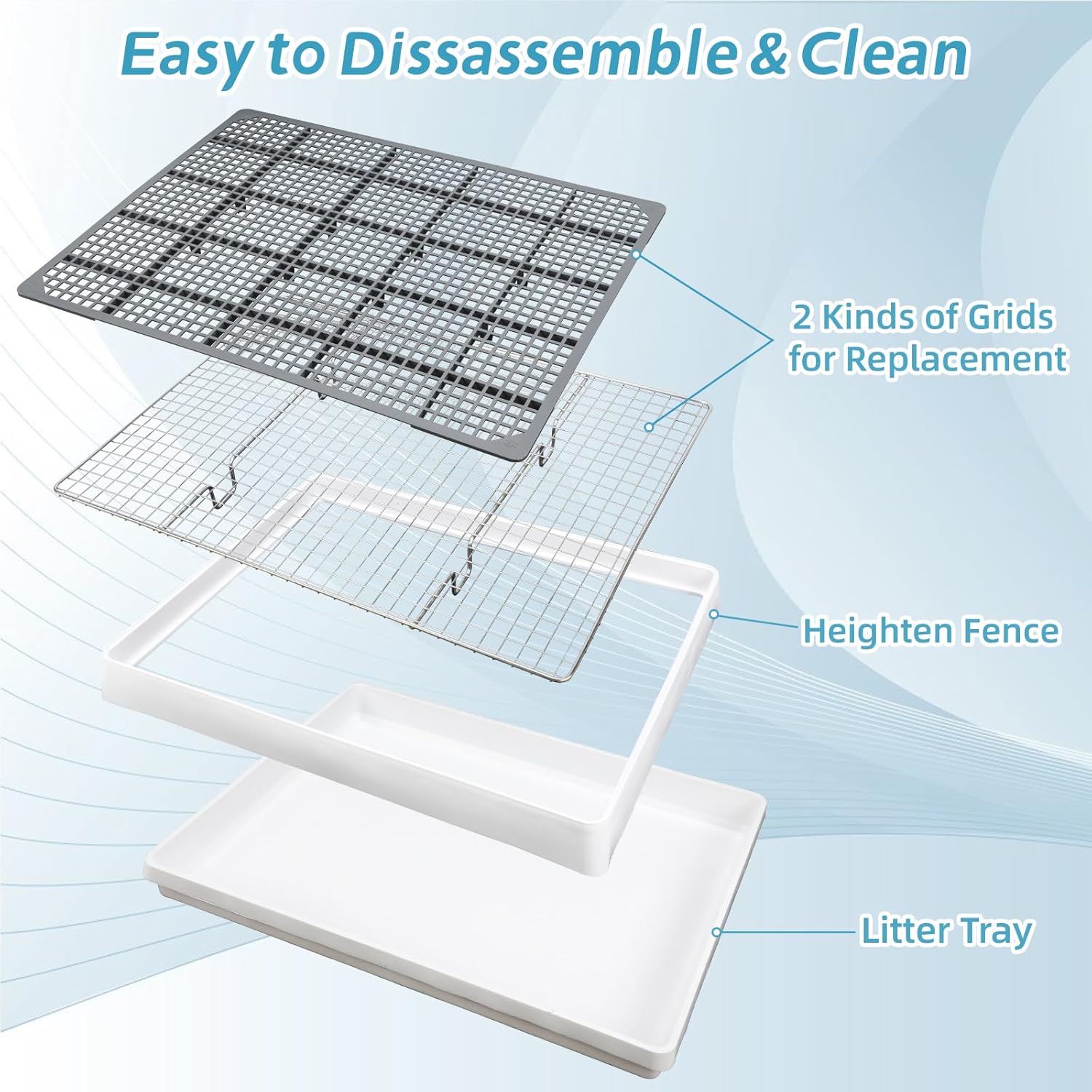 - Premium Material and Easy Cleaning: The pet litter box Made of high-quality thickened PP plastic body + stainless steel mesh, safe and odor-free, with smooth edges to ensure durability and pet friendly;It’s been a breeze to clean- just simply pick it up, dump contents, wipe or wash with vinegar and water to remove pee stains, and place it back in your cage and no smell