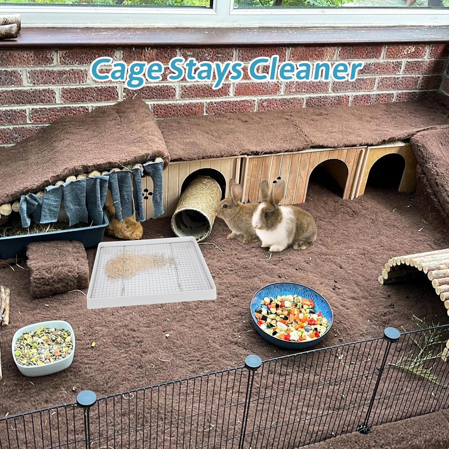 - Ultra Large Rabbit Tray: Our steel grids rabbit litter box is 22"/56cm x 18"/46cm x 3"/7.6cm (L*W*H), and the bottom depth 1.57 inches (Can be storaged 3 days shits of 2 adult rabbits); The extra large size and multi rabbits are able to fit at the same time with plenty of room to spare to set their feeding bowls on top of as well; Tthe rectangular shape fits nicely in the cage corner