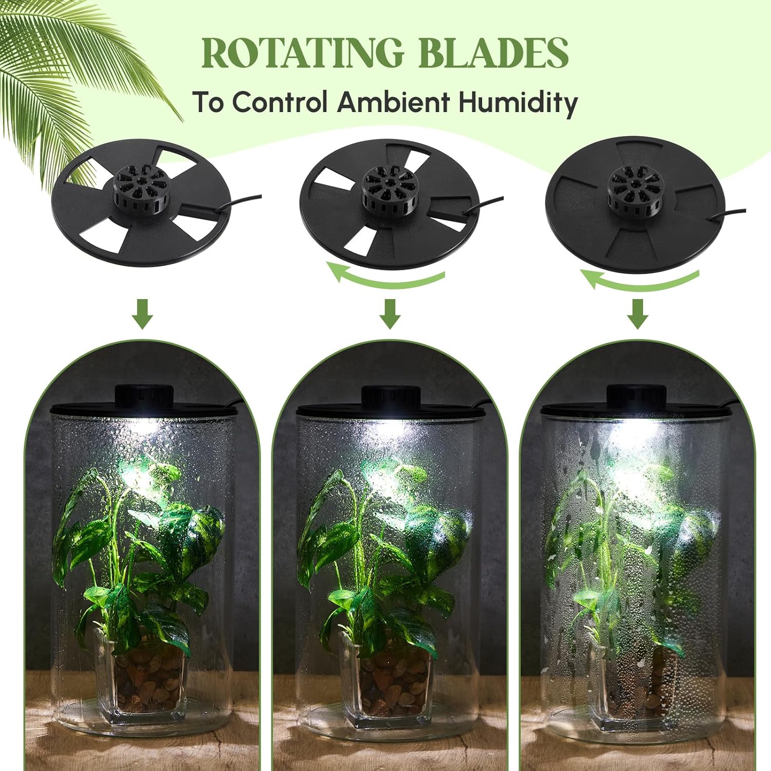 - Humidity and Timing Control: the size of the opening can be adjusted by rotating the inner ring to control the humidity inside the bottle; This allows you to create the suitable environment for different types of plants, helping them get better; The light also has a timing mode, Help you coordinate the environment inside the bottle