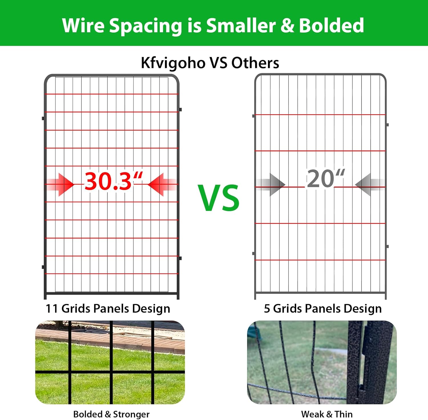 - 【Sturdy Structure & Stable Stakes】Kfvigoho metal stakes are designed round top, which can be pounded into the ground for greater stability, this dog fence with sturdy structure, so dogs can't knock it down and keep them confined in a safe area, the pet pen works great for small, medium and large dogs and rabbits, ducks, turtles etc