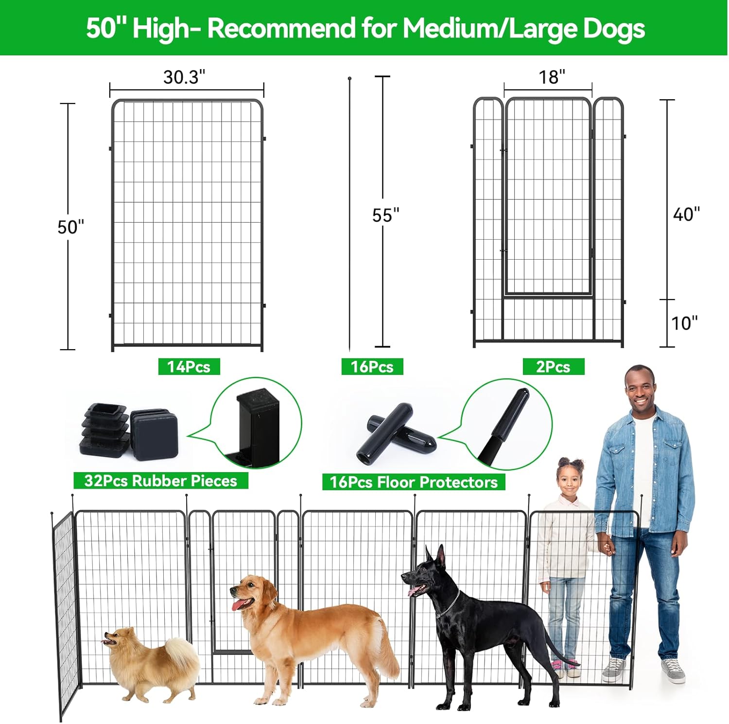 - 【Easy to Set Up & Multiple Combinations】The panels come with individual poles to connect them together, easy to set up or take it down in minutes, dog fence can do multiple combinations and configurations, dog playpen for the yard easily conforms to different shapes according to your garden or room, circle, polygon, irregular, etc
