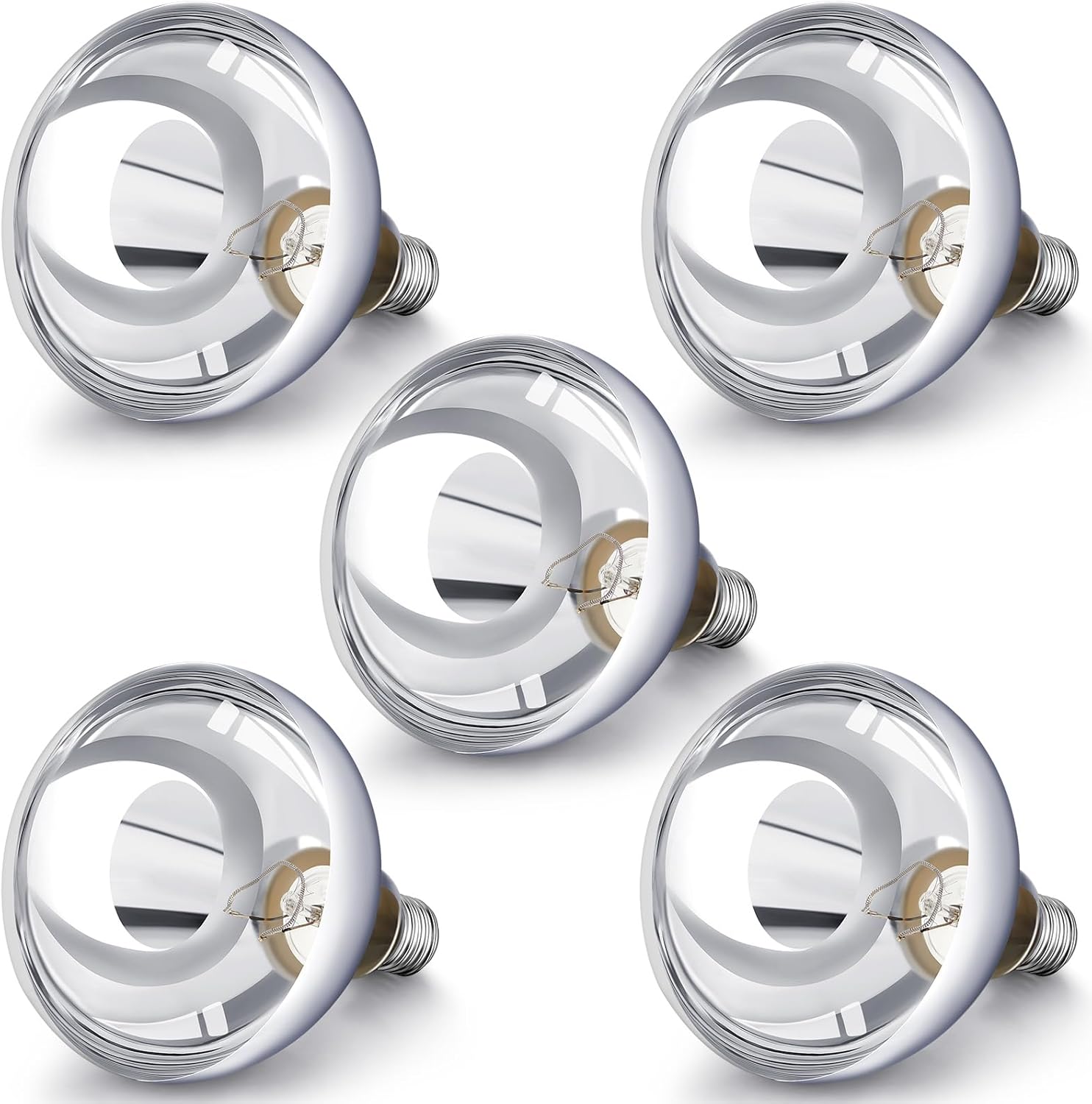 VIHOSE 5 Pack 250 Watt Heat Lamp 120v R40 Heat Lamp Bulbs Glass Incandescent Light Bulbs Incandescent Heating Lightbulbs for Reptiles Chicks Food Puppies Bathroom, Use E26 Base (Silver)