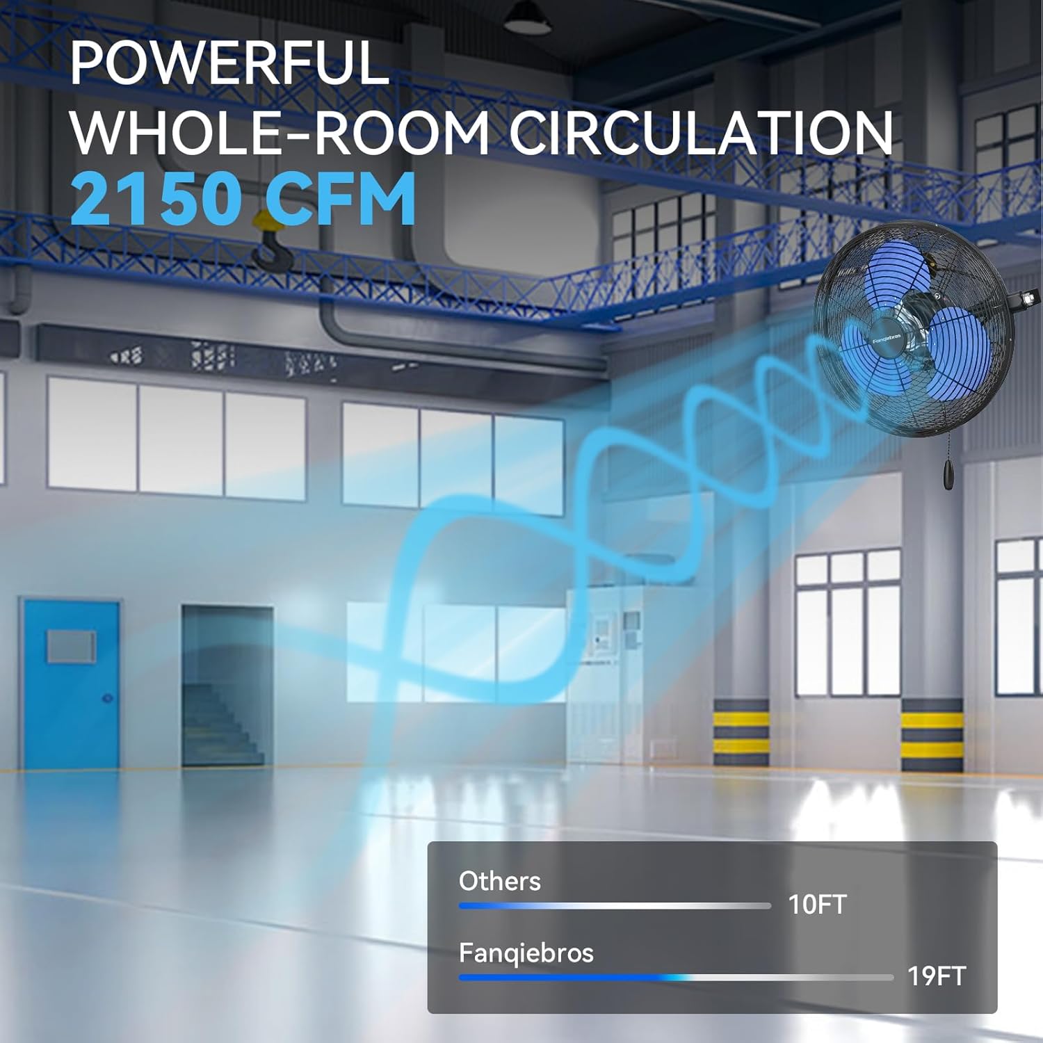 - 𝐇𝐢𝐠𝐡 𝐕𝐞𝐥𝐨𝐜𝐢𝐭𝐲 𝐀𝐢𝐫 𝐅𝐥𝐨𝐰 - Equipped with 3 adjustable wind speeds, low (1700CFM), medium (2100CFM) and high (2500 CFM), this wall fan utilizes the raw power of the pure copper motor to provide hurricane-like airflow to meet your garages, shops, covered patios, or anywhere else you need