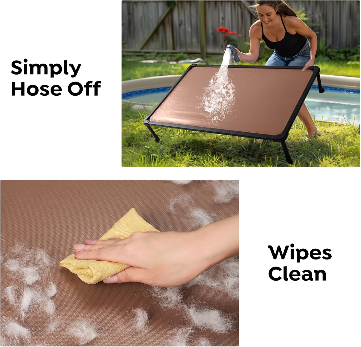 - Easy to Clean: The surface of the fabric is smooth, easy to wipe off the dirt on the raised dog bed; And dog cot can also be rinsed with water and then dried