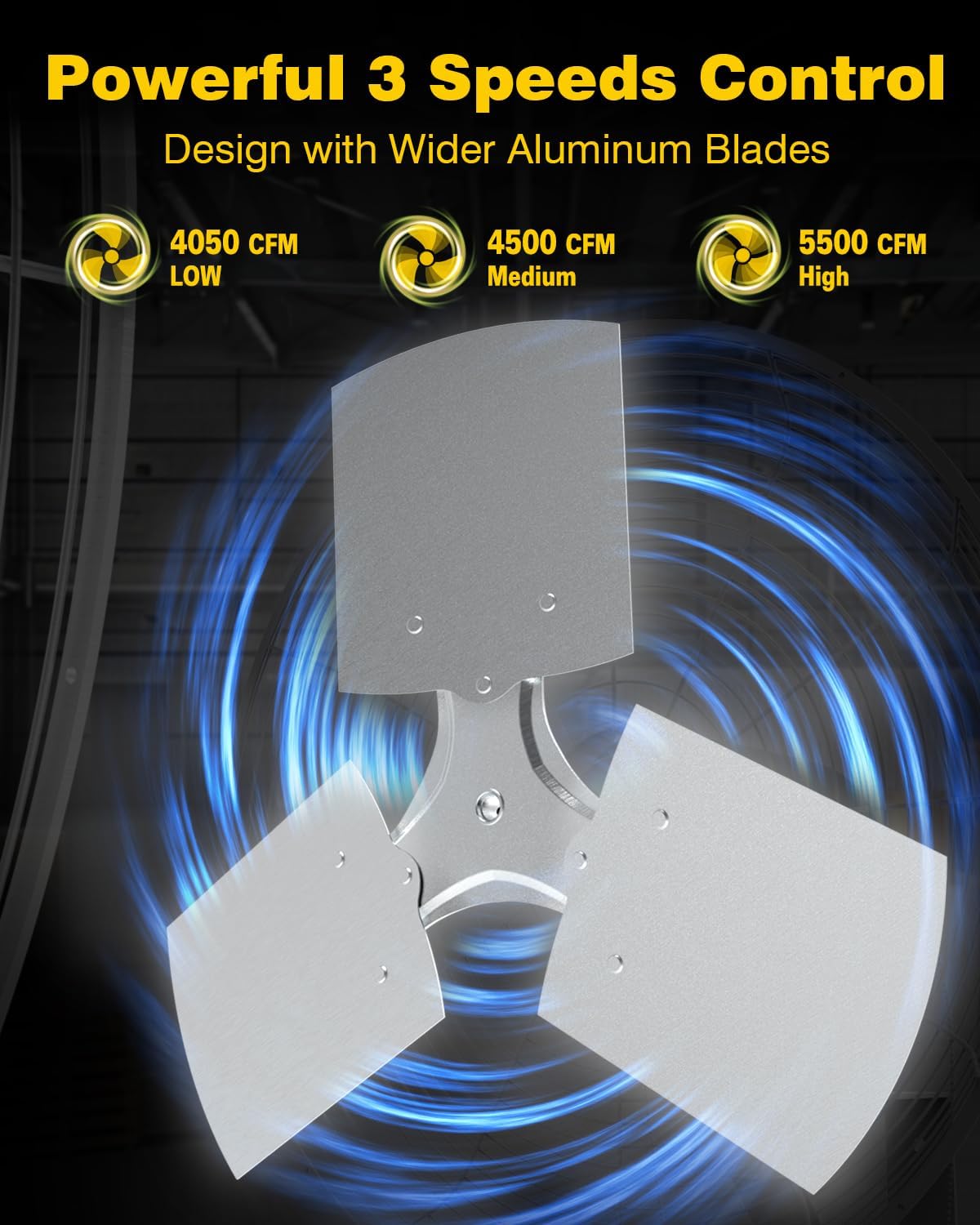 - Easy Assembling & Using: Industrial fan with a wall mounting bracket and hardwares to be easily mounted on the concrete wall. Equipes two chains to control three different speeds and oscillation.