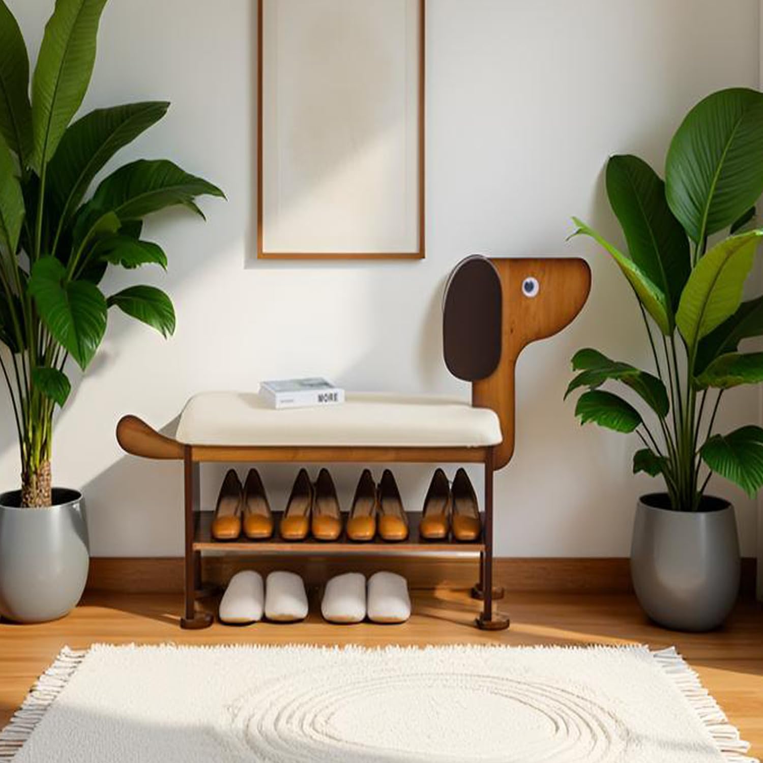 - Cute design:The shoe bench is designed in the shape of a puppy, which adds to its cuteness and uniqueness. It not only effectively decorates your house but also brings joy to your children.