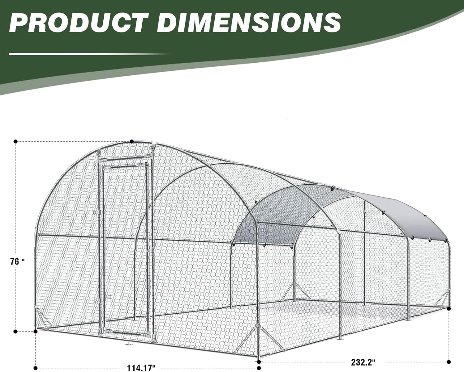 4ever2buy Large Metal Chicken Coop with Run Walk-in Poultry Cage Chicken Runs House Pen Cage Dome Roofed Chicken Coops with Anti-Ultraviolet Cover for Outdoor Backyard Farm Use 9.5'W x 19.3'L x 6.3'H
