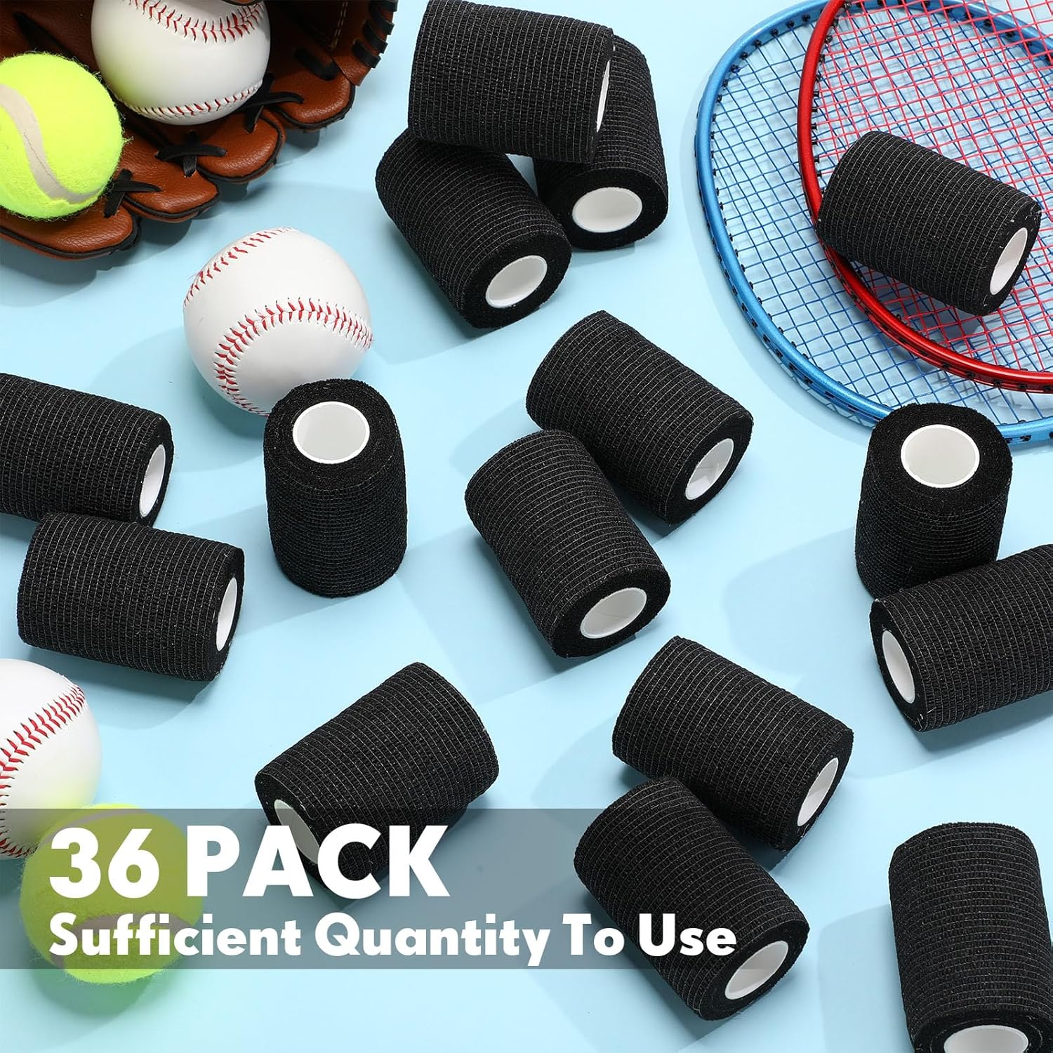 Treela 36 Pcs Self Adherent Bandage 3" X 5 Yard Wrap Breathable Cohesive Bandage Elastic Adhesive Tape for Stretch Athletic Sports Wrist Ankle(Black)