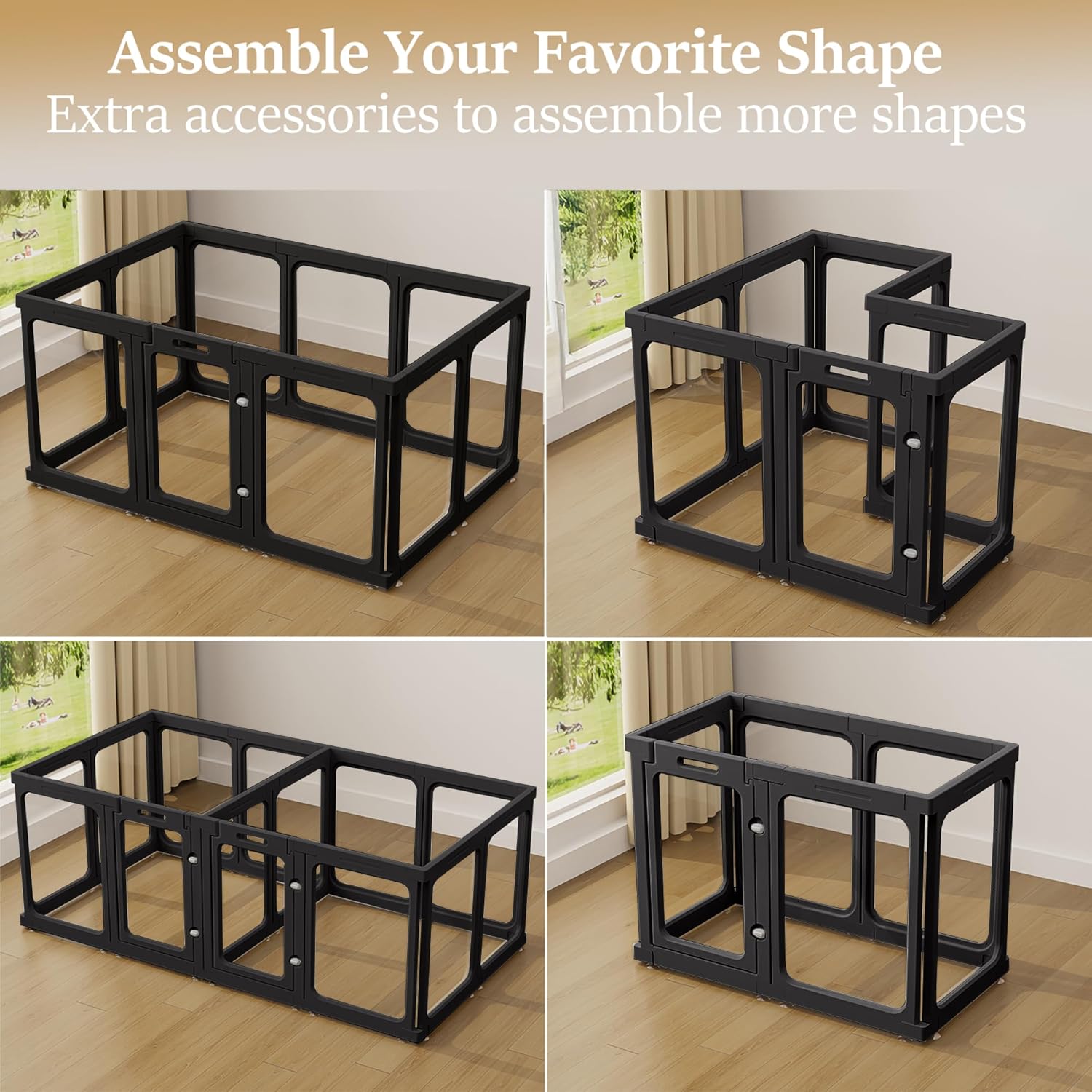- 【MODERN & BEAUTIFUL DESIGN】- Our dog playpen breaks the traditional cage fence design, made of bright and transparent material, like a bright pet home, more beautiful, easy to clean, so that your pet is no longer anxious, no longer feel imprisoned, no longer worry about your pet getting stuck in the playpen, and it is also convenient for you to observe your beloved pets.