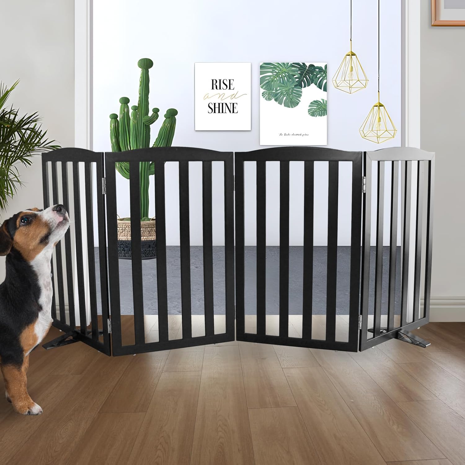 - 【4 PANELS】 Dog gates is built with 4 separate panels, secured together with sturdy stainless steel hinges.dog gates is a dog fence, room divider, and pet pen all in one.