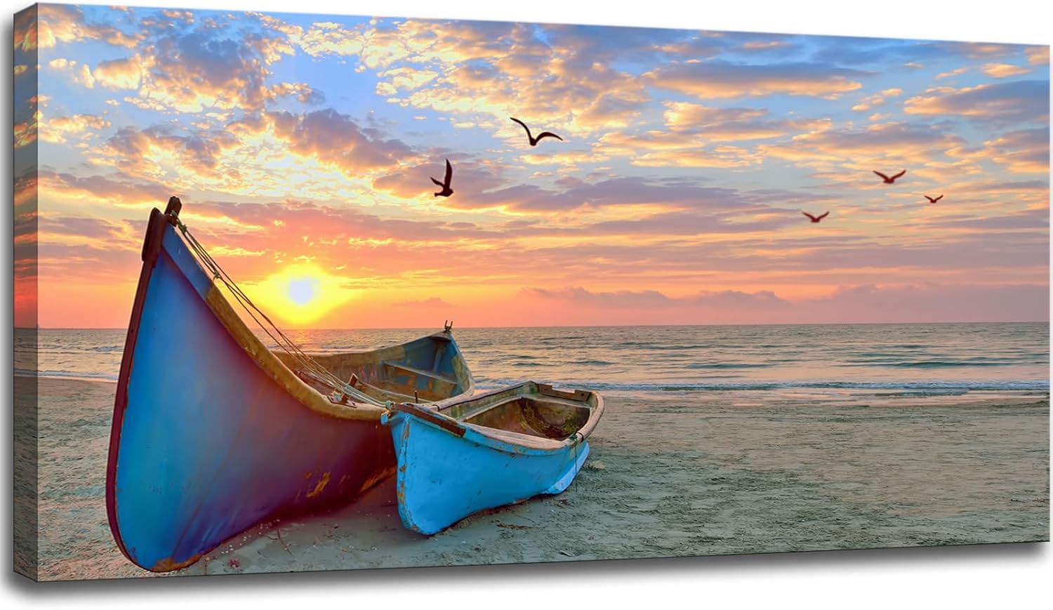 - ๐ใSunset Beach Wall Art Sizeใ-20x40"(50cm x 100cm), Ocean beach Landscape Canvas wall art prints already come with canvas wrapped wooden framed and hook mounted ready to hang. Nature beach pictures wall art, create a natural feeling of calm and relax to your home interior decor scene.