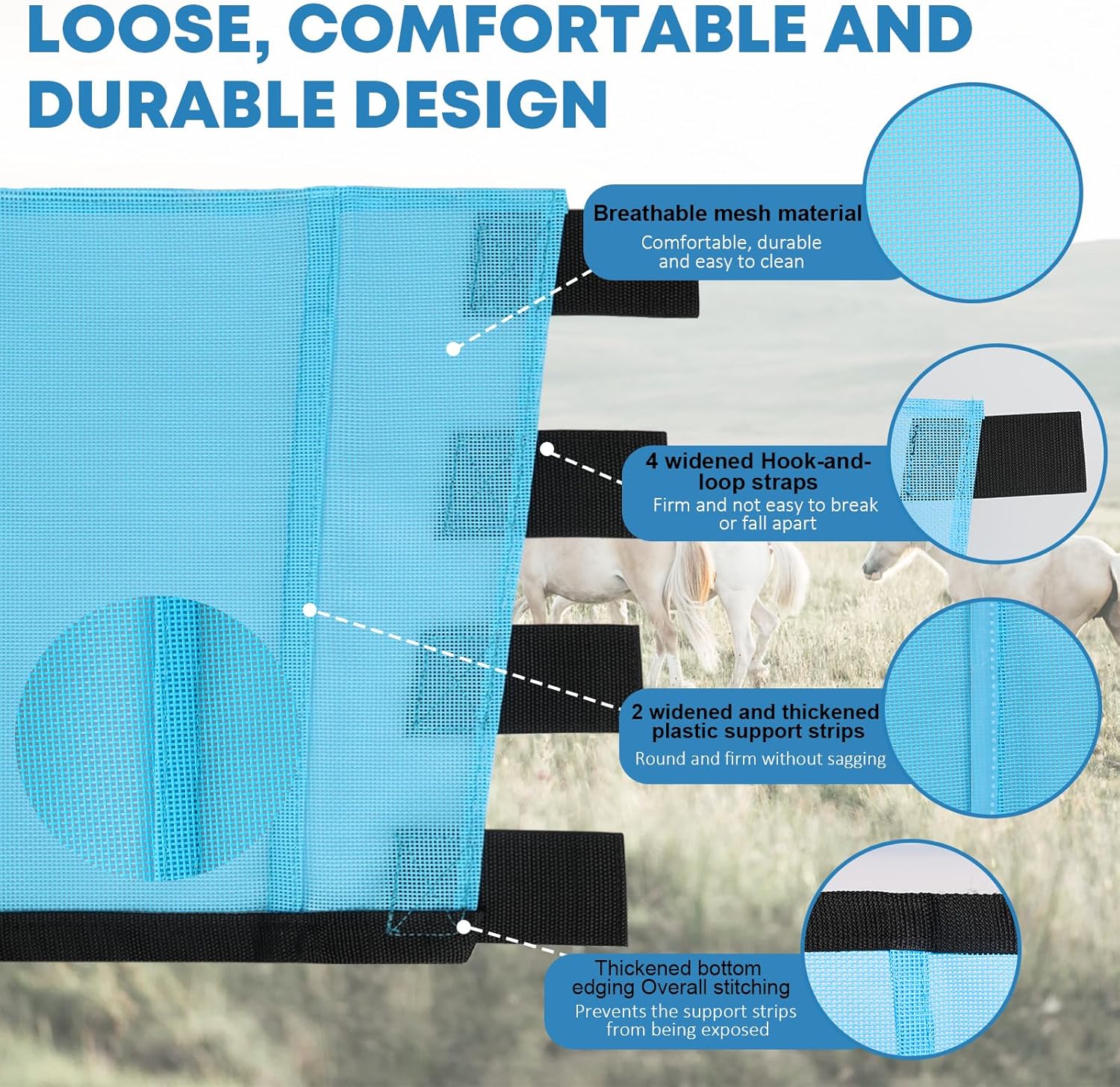 Premium 4-Pack Horse Fly Boots & Leggings Loose-Fit Fine Mesh with Stay-On Fasteners, Support Strips & Anti-Stomp Design Breathable Non-Slip Protection Leg Wrap (Large) Sky - Blue