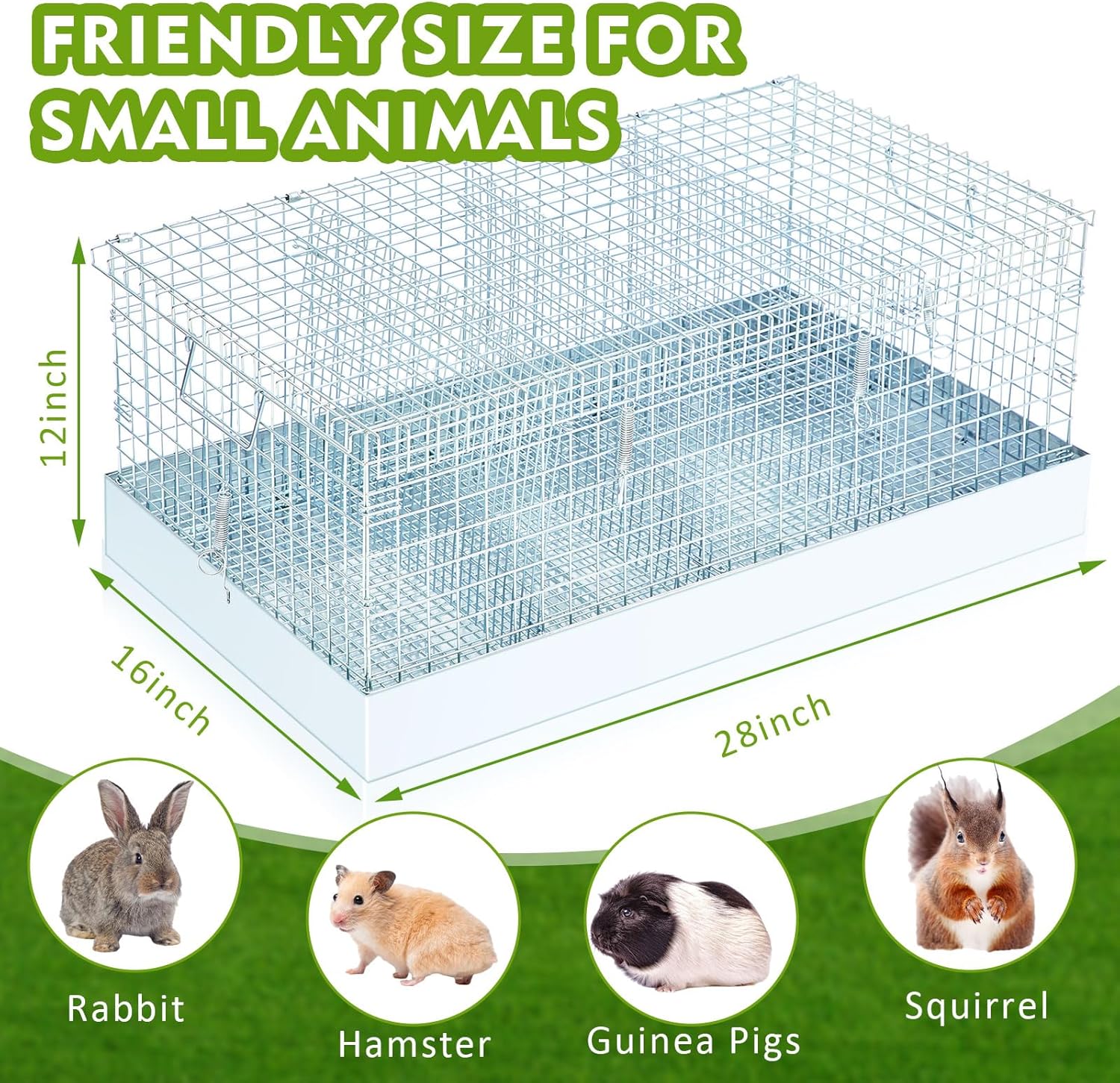 - Durable & Chew-Resistant Materials: crafted from sturdy galvanized wire with 2.2 mm (0.09 inch) thick bars, this cage offers safe and long-lasting use for rabbits, guinea pigs, and other small pets. The chew-resistant bars and removable tray keep paws protected while making cleanup effortless
