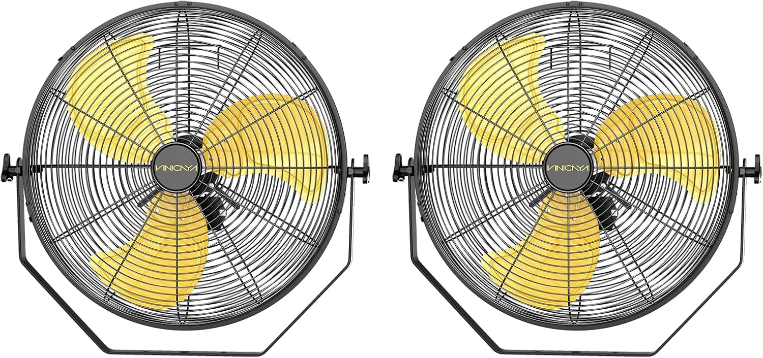 20 Inch Industrial Wall Mount Fan with 2 Pack, 5200 CFM Industrial Metal Wall Fans with Poweful Motor, 3 Speed, Heavy Duty Construction Indoor for Warehouse, Workshops, and Garage, UL Listed