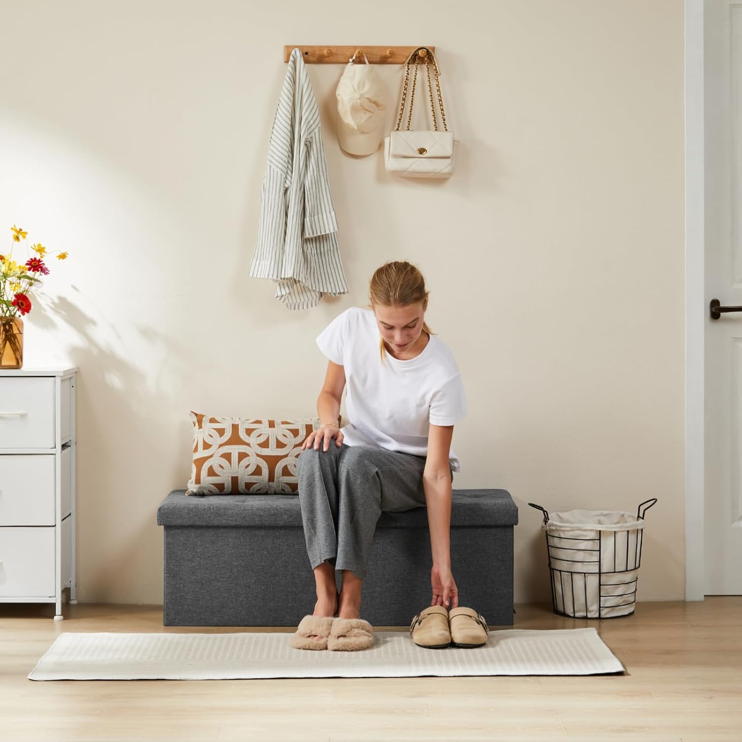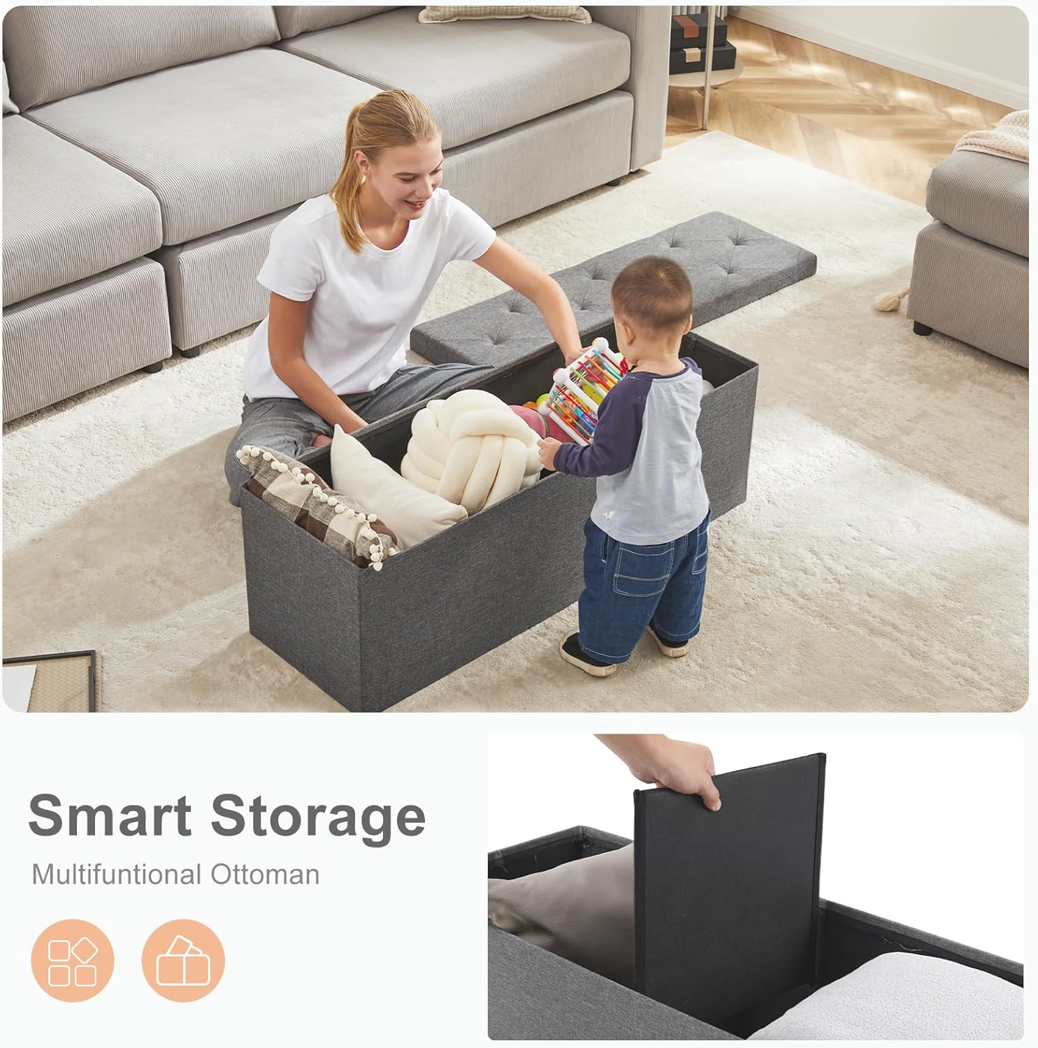 Sweetcrispy 43in Foldable Storage Ottoman Bench, Foot Rest Stool Storage Chest with Padded Seat, End of Bed Bedroom Bench for Living Room, Support 660lbs, Dawn Grey