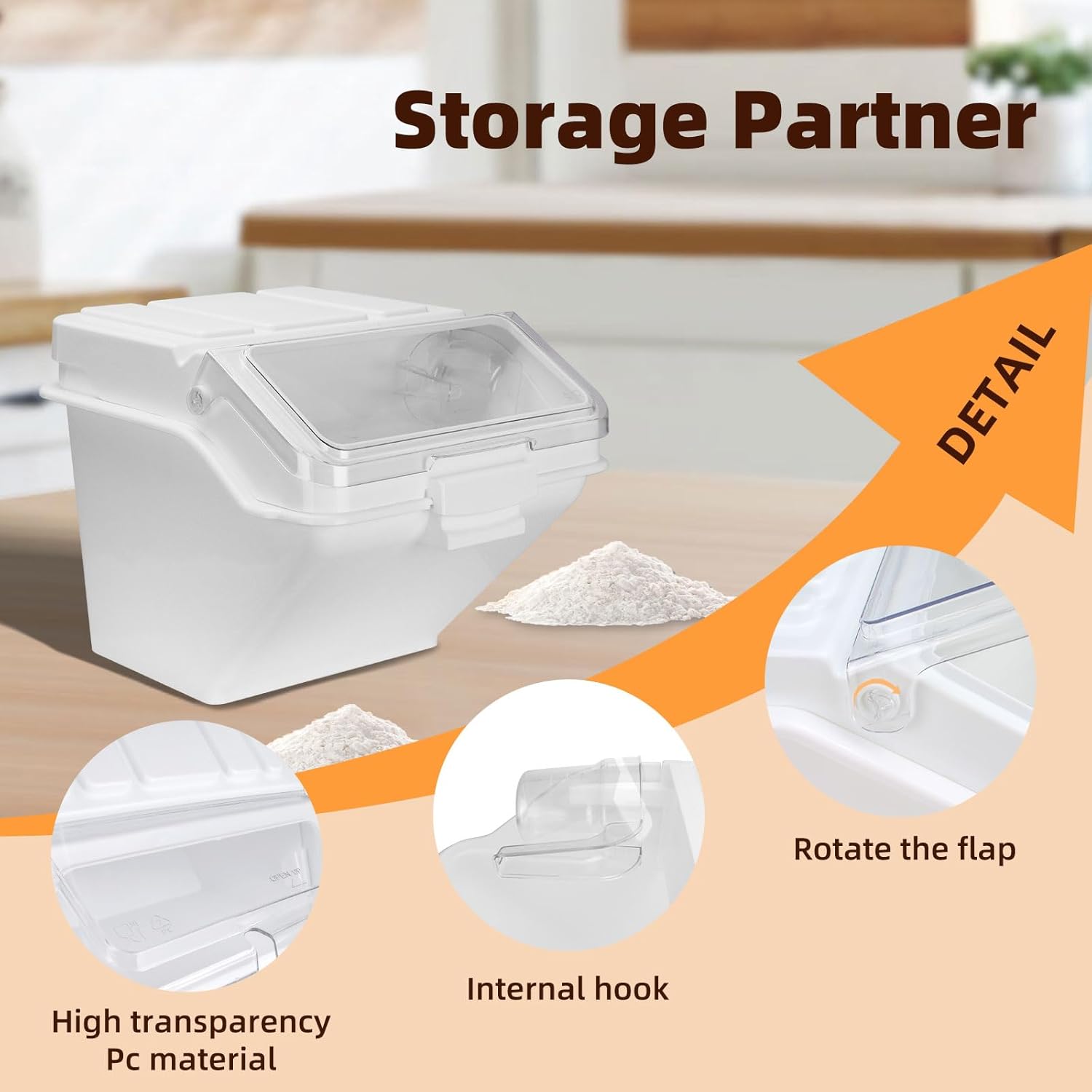 - 3. 【Food-Grade Safety Material】Constructed from thickened PP resin – exceptionally durable and crack-resistant. Guaranteed safe contact with food, ensuring flour stays pure and uncontaminated.