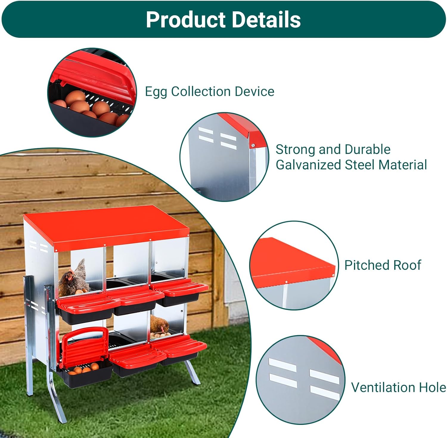 - OPTIMAL COMFORT FOR HIGH EGG PRODUCTION: This chicken nesting box features six spacious, safe, and sheltered areas, providing hens with a comfortable environment that encourages frequent laying and maximizes egg production while keeping the space clean