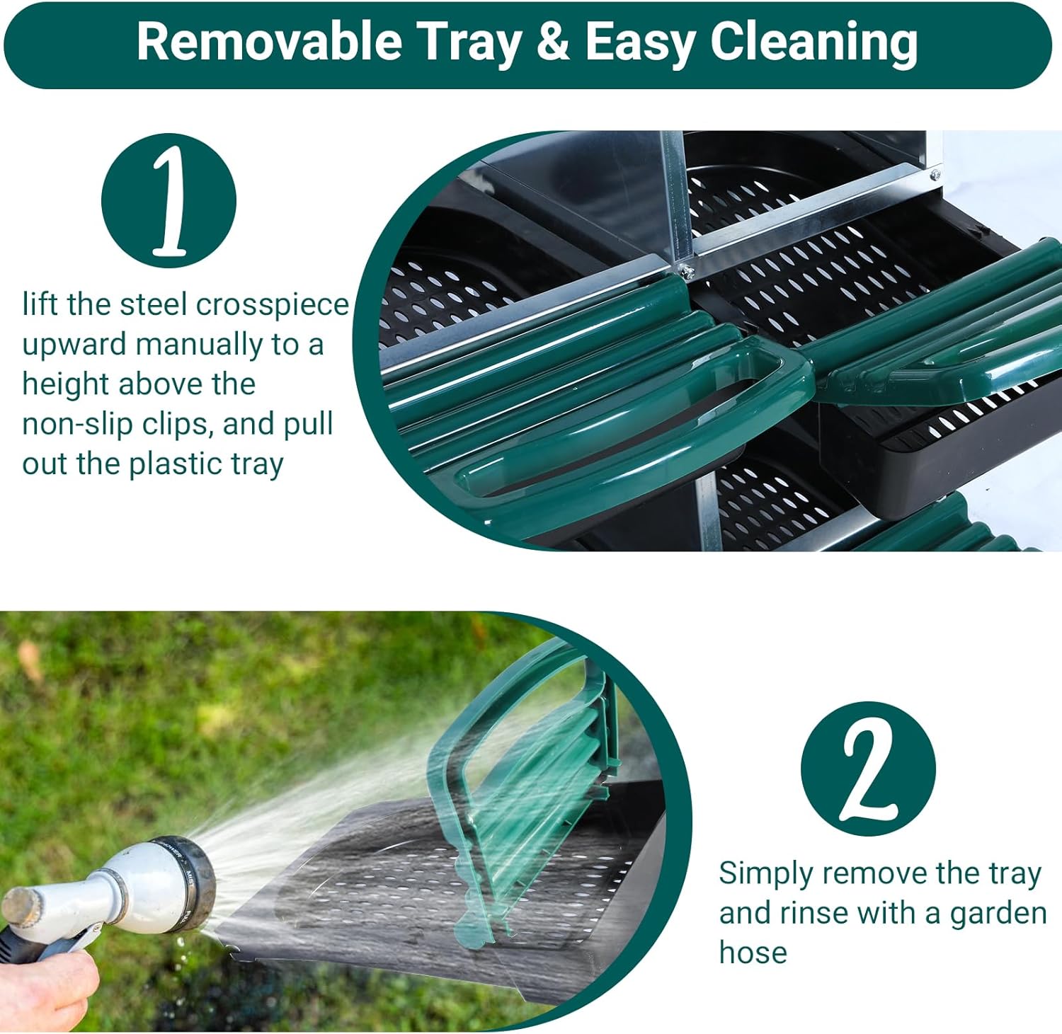 - EASY CLEANING: The small holes in the bottom of this egg nesting box prevent moisture and debris from accumulating, and the removable tray makes cleaning easy. Simply rinse with water to keep the nesting box clean and tidy, ensuring the health of the hens.