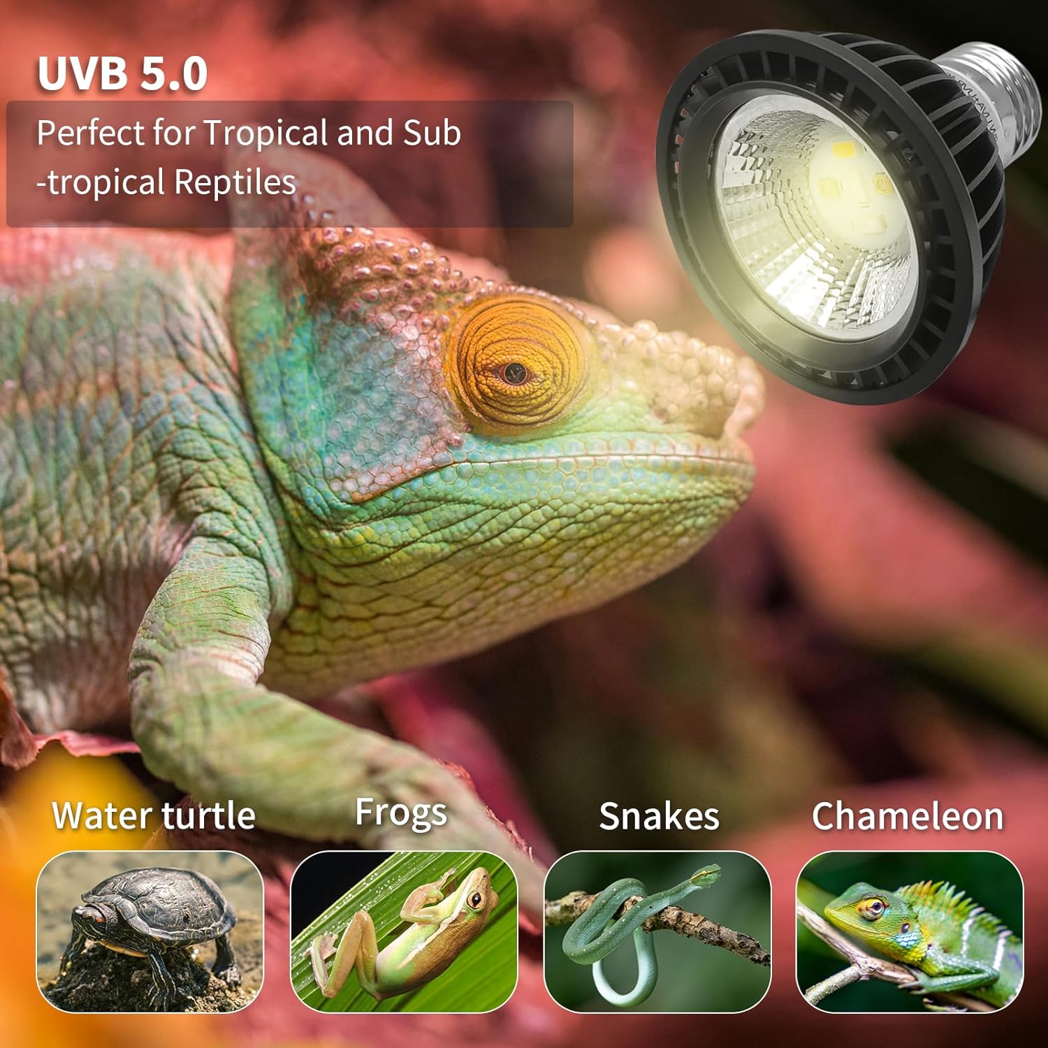 - Capable of Stable Use for More Than 8000 Hours: Smaller volume size, LED beads, aluminum alloy lamp body. Efficient electronic components with great heat dissipation and sturdy casing ensure the stability and durability of this reptile UVB bulb. Efficient and stable UVB-UVA light allow reptiles to fully enjoy the sunshine bath.